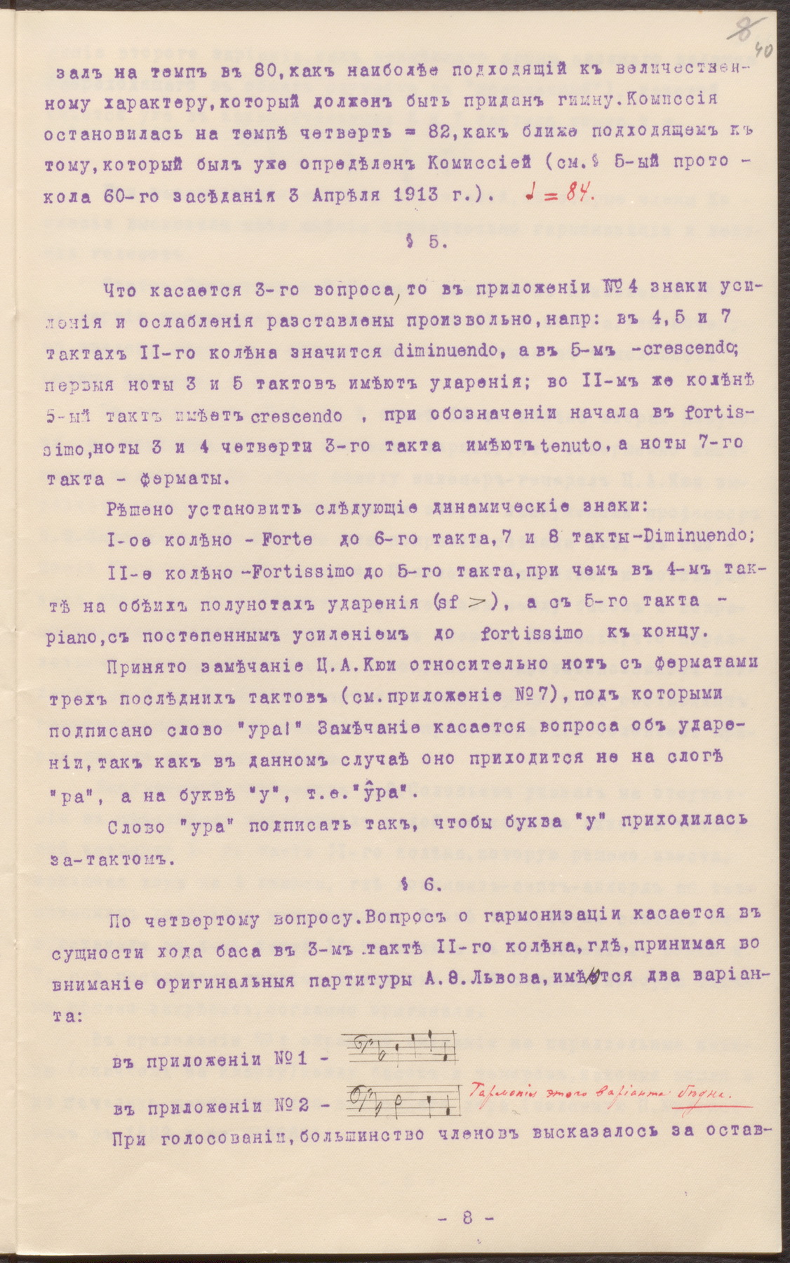 На л. 7–9заметки Н. Ф. Соловьева с анализом темповых и темпоритмических особенностей рукописных и печатных партитур гимна, присланных ему в качестве приложений к циркулярному письму от 2 февраля 1914 года. Автограф Н. Ф. Соловьева.